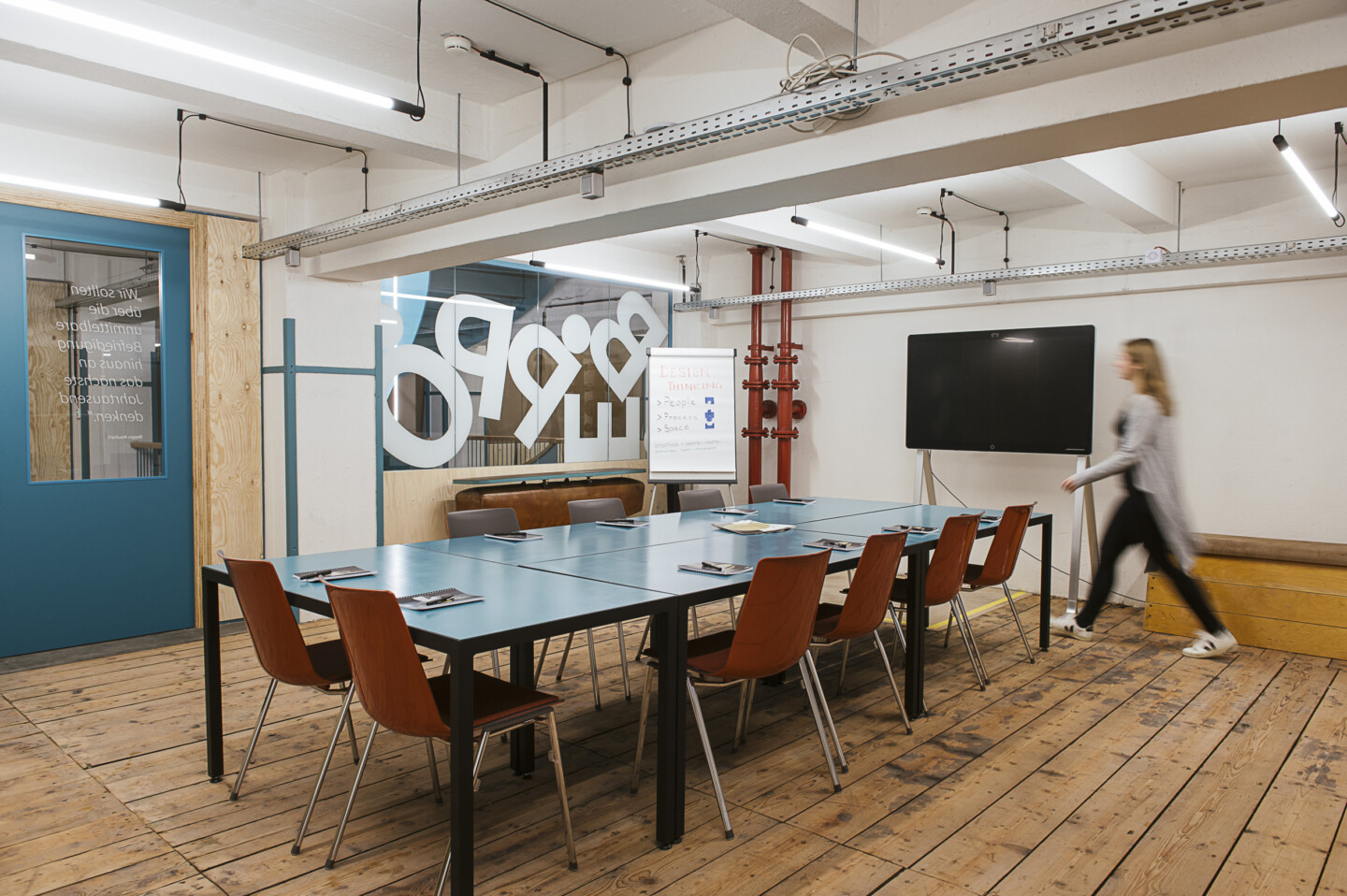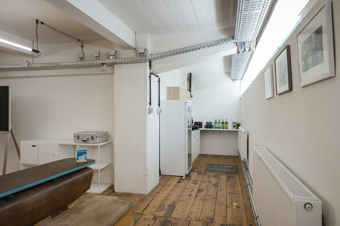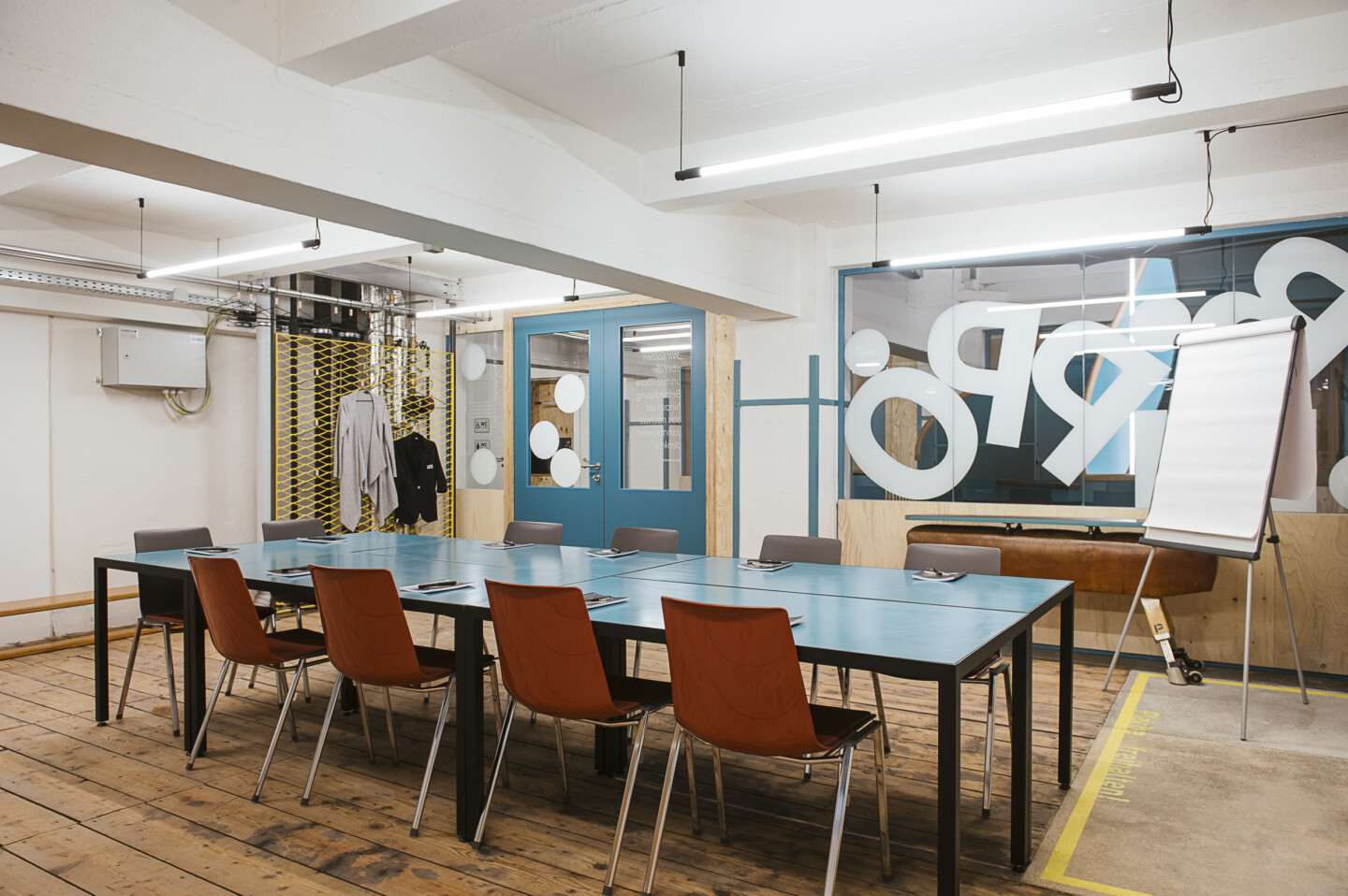 Im ART MAGAZIN im Haus FALK lädt der Workshopraum Beppo dazu ein, Ideen freien Lauf zu lassen. Der Raum im ersten Stock des ehemaligen Tabaklagers an der Donaulände ist dem legendären ,,Fabriks-Sir” Beppo Mauhart, Fußball-Funktionär und Aufsichtsratsvorsitzender der Austria Tabak, gewidmet. Der Raum verbindet die industrielle Geschichte des Zigarettenwerks mit moderner Meeting-Infrastruktur und sportlichen Akzenten.
